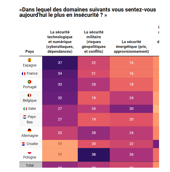 Η Ευρώπη δεν αντιμετωπίζει μόνο αυξανόμενους κινδύνους, αλλά υφίσταται και έναν μετασχηματισμό του ιστορικού, γεωπολιτικού και πολιτικού της περιβάλλοντος. Η συνολική εικόνα της έρευνας αποτυπώνει μια Ευρώπη ανήσυχη, βαθιά συνειδητοποιημένη για τις ευαλωτότητές της και που δυσκολεύεται να προβάλλει μια θετική εικόνα για το μέλλον της, είπε στον Guardian o Ζαν Ιβ Ντορμαζέν,καθηγητής πολιτικής επιστήμης και ιδρυτής του φορέα δημοσκοπήσεων Cluster17.