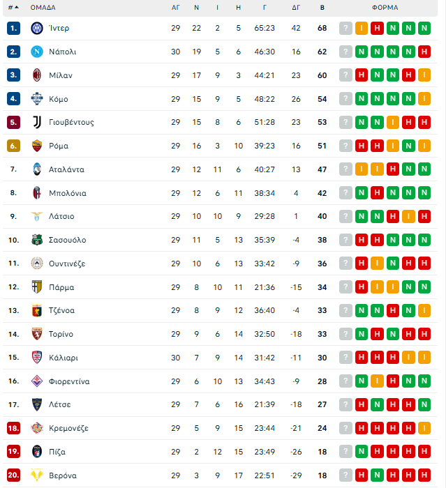 Η 30η αγωνιστική της Serie A: