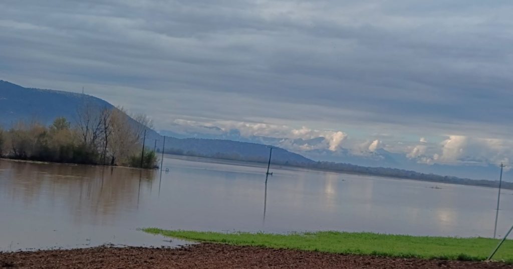 Σε μία απέραντη λίμνη έχουν μετατραπεί χιλιάδες στέμματα καλλιεργειών στον Δήμο Φαρκαδόνας από την υπερχείλιση του Πηνειού ποταμού μετά τις έντονες βροχοπτώσεις που σημειώθηκαν και στη Θεσσαλία.