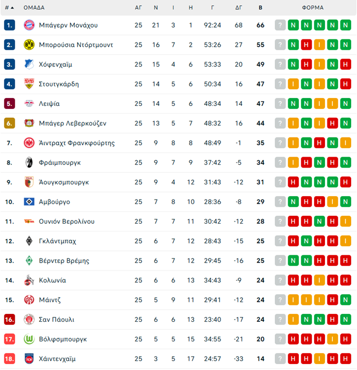 Τα αποτελέσματα της 25ης αγωνιστικής: